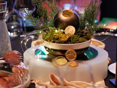 Not one to throw some fairy-lights on top for good measure, we designed and built neon+plywood glowing risers to gently illuminate table decor: a contemporary approach recharged for the next event.